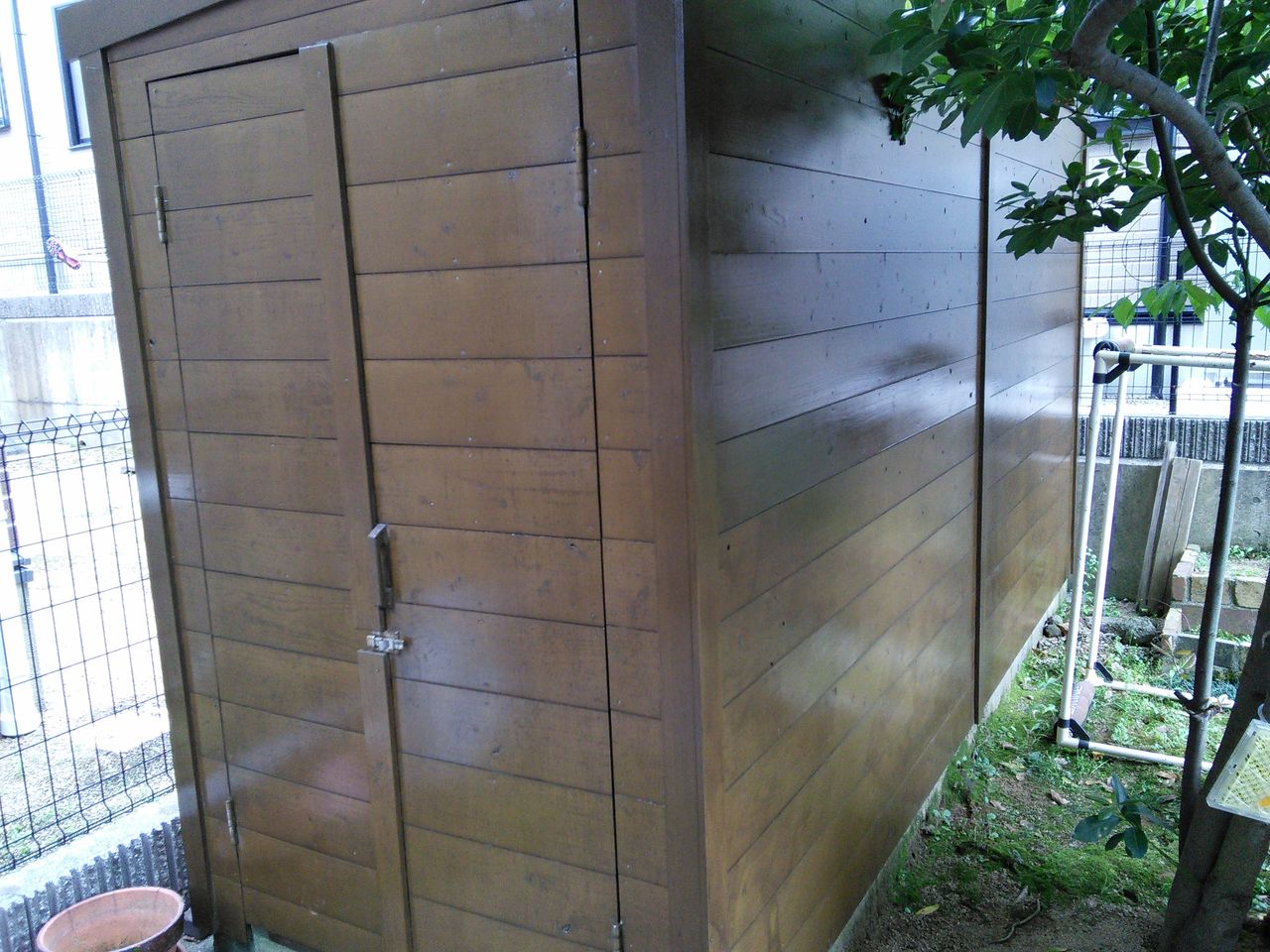 梅雨前に庭の木製品にオイルステインを塗りました。
