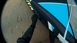 ビデオで使ってる青と白のセイルはナッシュのボクサー5.8で、2016年の4月にマストが折れてスリーブが大破したものを補修…