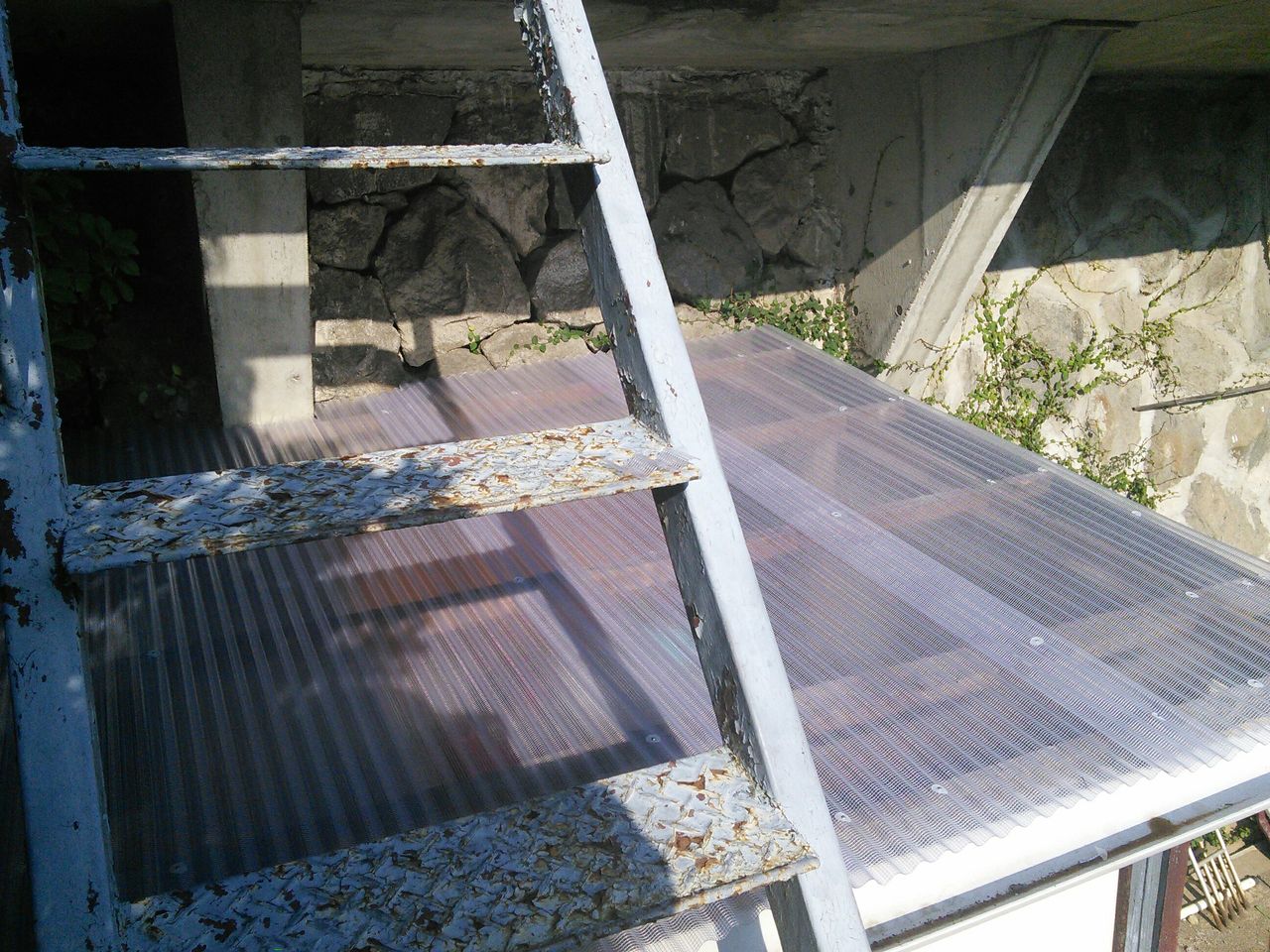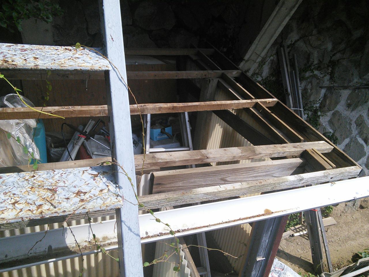 屋根のサイズは、縦190センチ×横210センチ、奥は石垣に沿っていて梁などがあり段があります。