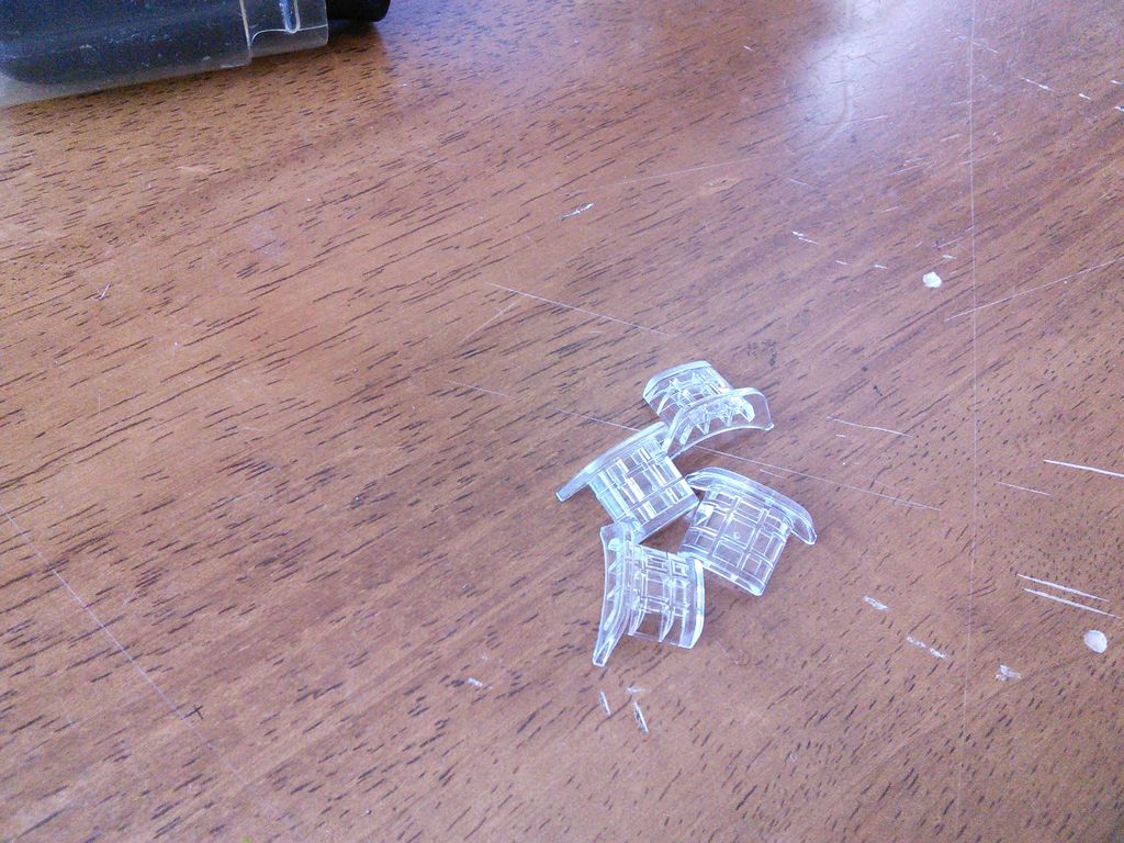 透明プラスティックの部品を外して やや固めなので、写真は片手ですが、両親指で押すととれます。