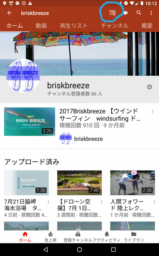 また、youtube画面にはキャストボタンがありますので、それをクリックしてもキャストすることができます。