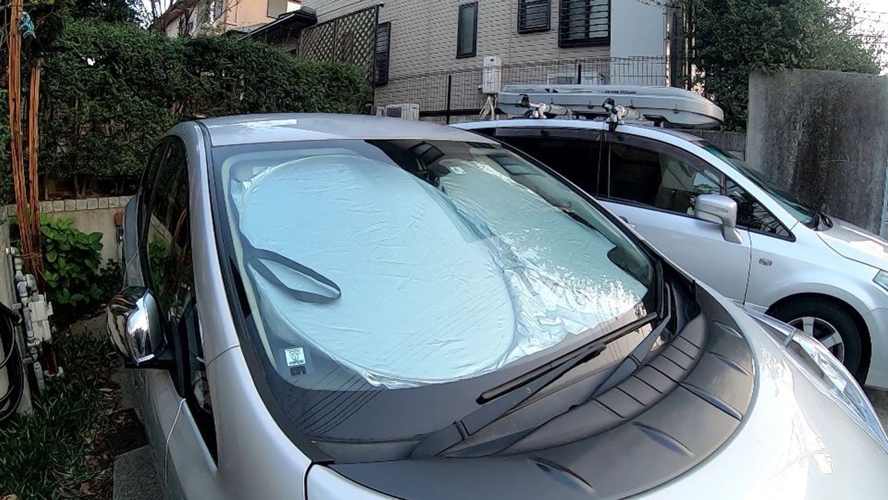 我が家は青空車庫で、特に夏は紫外線による車の痛みが気になるので、車内くらいは直射日光を避けようとまめにサンシェードをかけてます。