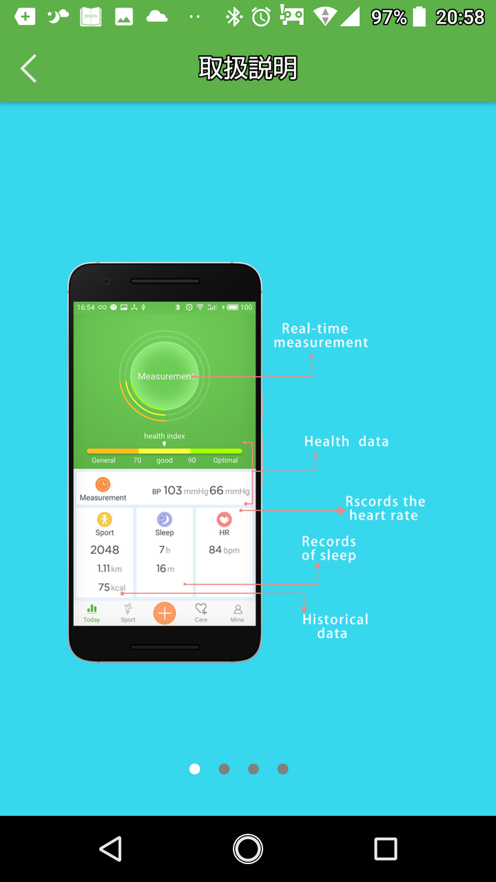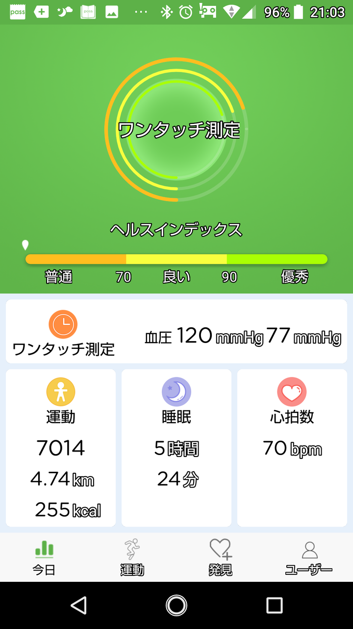 アプリを開くと今日の健康状態が表示されます